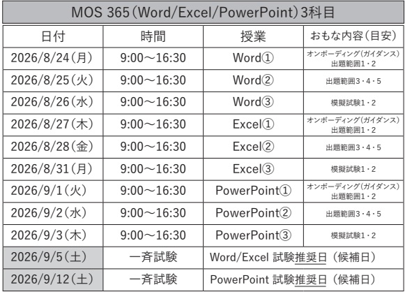 MOS365(Word/Excel/PowerPoint 3科目)試験対策WEB講座[8/24(月)〜]マイクロソフトオフィススペシャリスト